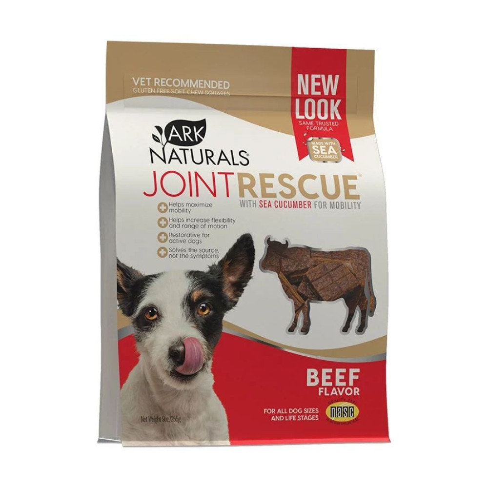 Dogs of all sizes will be jumping for joy for these Joint "Rescue"® soft chew squares literally! The chews are packed with glucosamine, chondroitin, MSM, and Ark Naturals' not-so-secret special ingredient, sea cucumber, to help support a normal inflammatory response and help support their joints. Use after strenuous activity (like swimming and hiking), or to help aging pups improve mobility associated with stiffness and discomfort. These jerky chews taste delicious, and come in 4 great flavors to choose from.