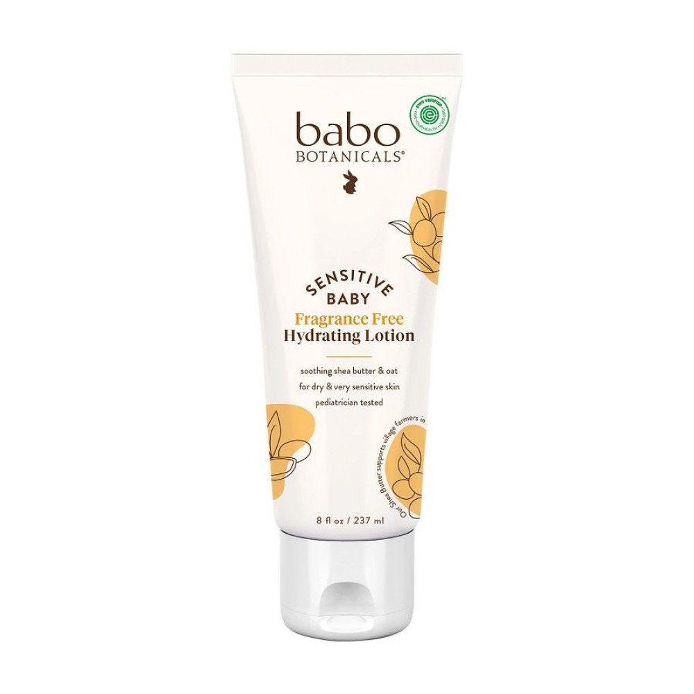 Meet the moisture your baby's skin is missing. Created to comfort and soothe dry and sensitive skin, this gentle fragrance-free baby lotion is made with plant-based ingredients including oat, nourishing shea butter and jojoba oil. This hydrating formula is EWG Verified® to ensure the highest level of safety and quality for daily use even on the most delicate skin. Lightweight and non-greasy, this gentle baby lotion will leave skin nourished and comfortable all day and all night. Babo Botanicals sustainably sourced Shea Butter supports village farmers in highlands of Guinea.