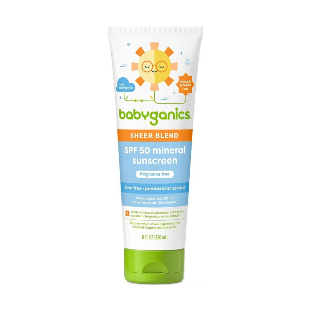 Getting baby sun-ready shouldn't involve streaky sunscreen and the squirmies. Babyganics has got you covered with a sheer, water-resistant SPF 50 and 100% zinc oxide active formula. Tear-free and pediatrician-approved, it blends in quickly & easily so you can say g'bye to icky residue. talk about sheer-bliss.