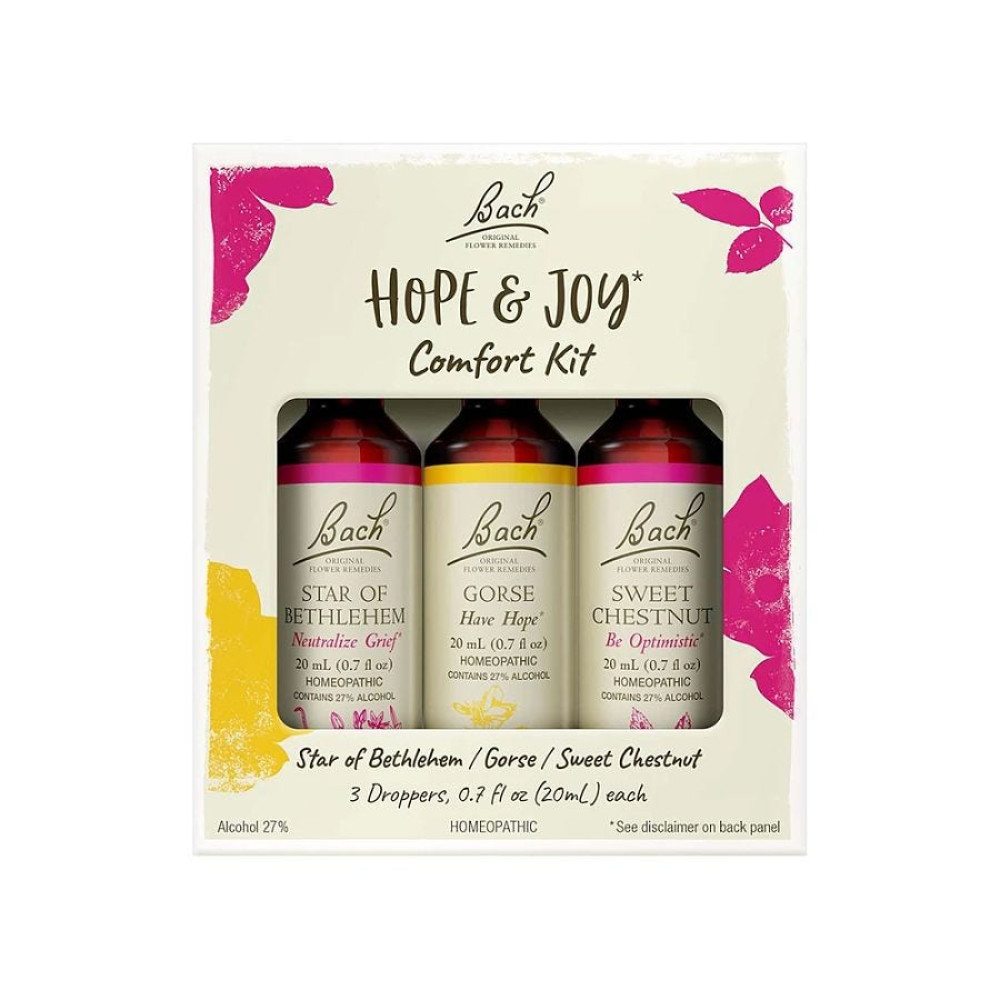 Find Hope and Joy. Take a breath. Be optimistic that things will work out. This comfort kit contains 3 full size Bach Original Flower Remedies: Star of Bethlehem: helps soften the impact of shock, grief, or bad news. Gorse: encourages a brighter, more positive perspective when feeling hopeless. Sweet Chestnut: encourages optimism and peace of mind when feeling overwhelmed with anguish and stress.