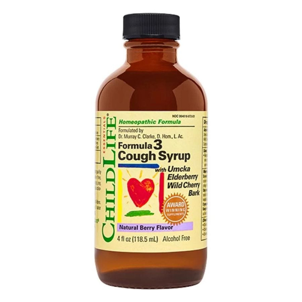 ChildLife Essentials® Formula 3 Cough Syrup® for children combines buckwheat honey and three of the most well researched homeopathic extracts to provide effective cough relief so your child can rest. Elderberry (Sambucus nigra) Umckaloabo (Pelargonium sidoides) Cherry Bark (Prunus serotina)