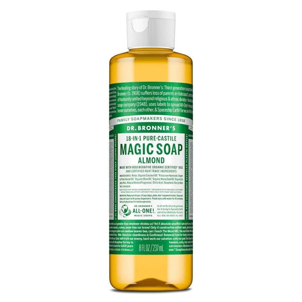 Refill your Dr. Bronner's 100% Post-Consumer-Recycled bottle, foaming hand soap pump dispenser, and more with our 32oz. Magic Soap Refill Paper Carton! Uses 86% less plastic than one of our 32oz. recycled bottles! Sustainable made easy! Warm, nutty, and slightly sweetDr. Bronner's Almond Liquid Soap delivers a rich, comforting experience! Made with Regenerative Organic Certified® oils, this true soap creates a rich, smooth lather that leaves you feeling renewed and rinses clean. Made with organic, ethically sourced ingredients and no detergents, dyes, or added foaming agents, it's a great soap for everyday use. Vegan, made with Organic Oils, Fair Trade, and EWG Verifieda clean that cares for you and the planet!