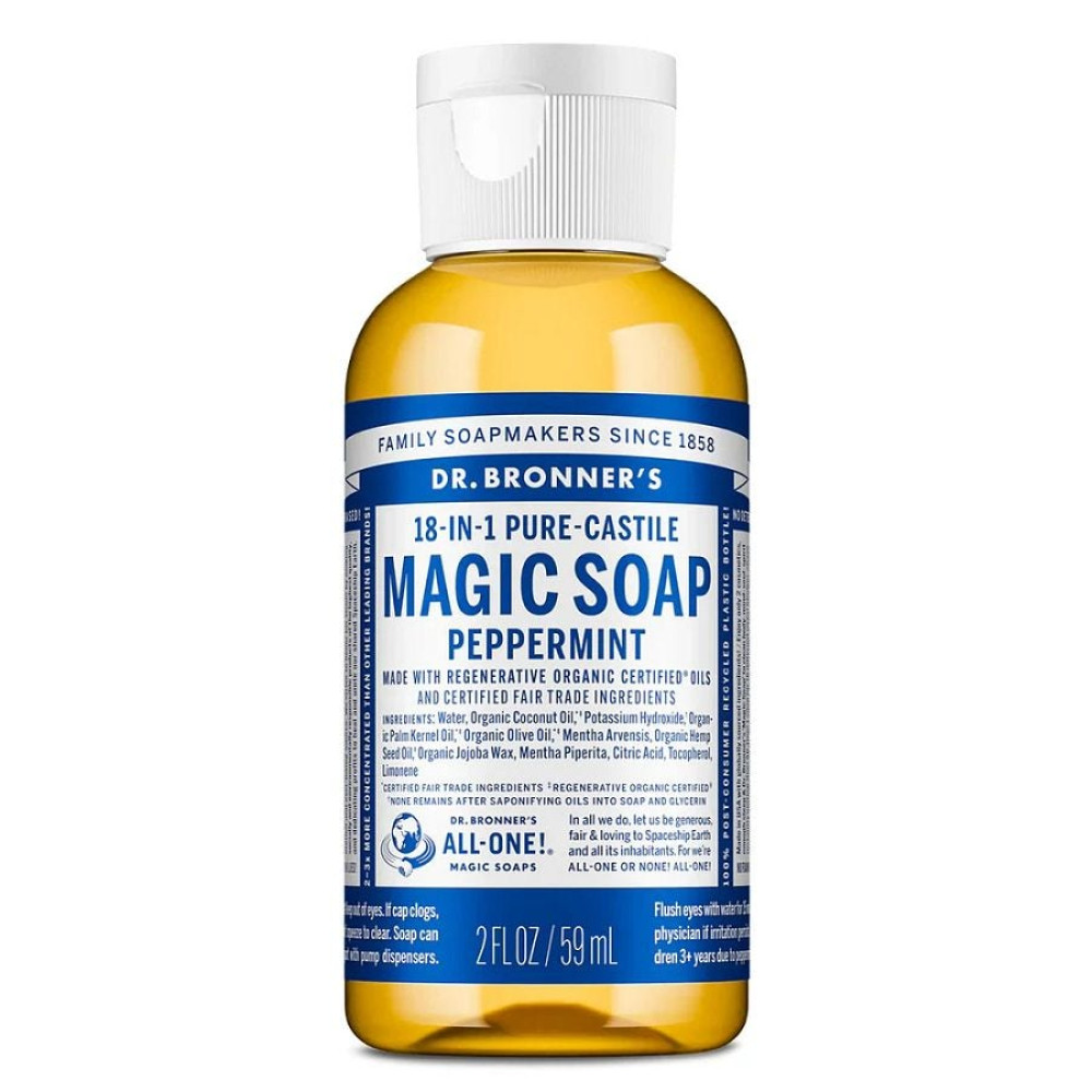 Dr. Bronner's Peppermint Liquid Soap is scented with organic peppermint essential oil for a refreshing, clean feel that leaves skin feeling cool and awakens the senses. Made with a nourishing blend of Regenerative Organic Certified® oils, this true soap creates a rich, smooth lather that rinses cleanleaving skin feeling fresh and renewed. Great for everyday use, it's crafted with ethically sourced, organic ingredients and contains no detergents, dyes, or added foaming agents. Vegan, made with Organic Oils, Fair Trade, and EWG Verified for peace of mindbecause caring for your body should also care for the planet! Please note: This product line has a new look. The packaging you receive may vary for a limited time.