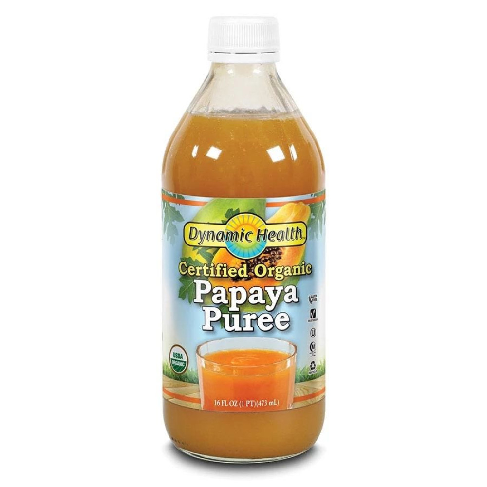 Dynamic Health Organic Papaya Puree has no sweeteners, preservatives, or other additives and is a natural source of the papain enzyme. Drink it pure or mix with water or your favorite beverage or smoothie for a great healthful boost.