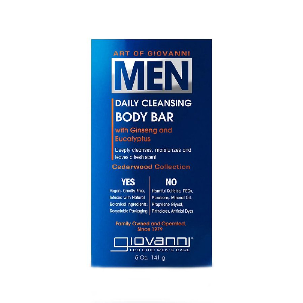 The Art of Giovanni: formulated specifically for men, this dual-purpose body bar soap clarifies and removes impurities including dirt, sweat, residues, and excess oils while moisturizing and leaving skin refreshed and feeling renewed. Infused with extracts of Cedarwood, Lemongrass, Saw Palmetto, Nettle, Aloe Vera, Clary Sage, and Ginseng, skin is left healthy-looking, hydrated, and feeling incredibly fresh with a clean and appealing scent that lasts throughout the day.