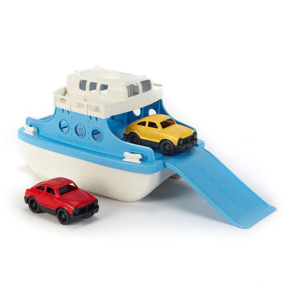 Set sail with the Green Toys® Ferry Boat for a quick bathtub excursion or an extended trans-pool voyage. Whatever the adventure, this two-story vessel is ready to hit the open water with room for eco-friendly cargo galore, and even comes with two Green Toys Mini Fastbacks. Use the slide-out ramp to load up the spacious bottom level that accommodates up to four Green Toys Mini Vehicles or Fastbacks.