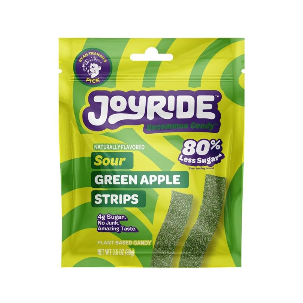 Elevate your snacking game with a burst of Joyride's Sour Green Apple Strips that's bold, unapologetic, and utterly addictive. This guilt-free delight has only 4g sugar and 70 calories per bag. Made without artificial colors or junk ingredients, these sour and fruity strips pack a punch without the sugar crash. Dive into a rebellious flavor adventure that's as edgy as it is delicious.