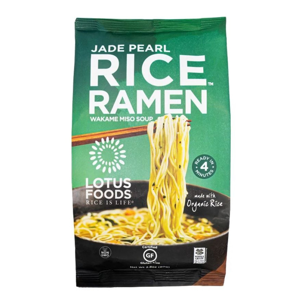 Made with Lotus Foods Organic Jade Pearl Rice™ infused with wild-crafted bamboo extract, these beautiful ramen noodles contain chlorophyll and are paired with a white miso and seaweed broth. Jade Pearl Rice™ Ramen noodles have a delicious light vanilla taste and enhanced nutritional value. Ready to eat in just 4 minutes - perfect for a quick meal on the go! For a complete meal, add in your favorite protein and veggies.