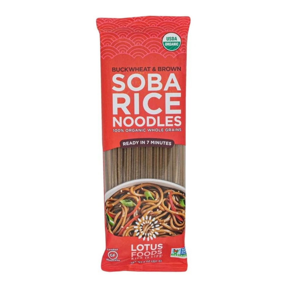 Lotus Foods Organic Buckwheat and Brown Soba Rice Noodles combine organic buckwheat — the seed that gives such valued taste and nutrition — with organic whole grain brown rice to create a beloved yet gluten-free Japanese-style Soba noodle. With its rich and nutty taste, serve chilled with a dipping sauce, in a hot broth, or in any pasta or stir-fry.