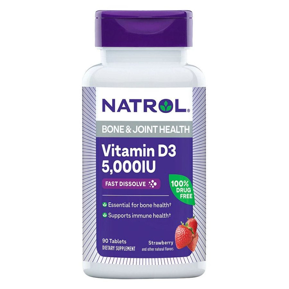 Specifications Natrol Vitamin D-3 Bone & Joint Fast Dissolve Strawberry Tablets 5,000 IU 90 count