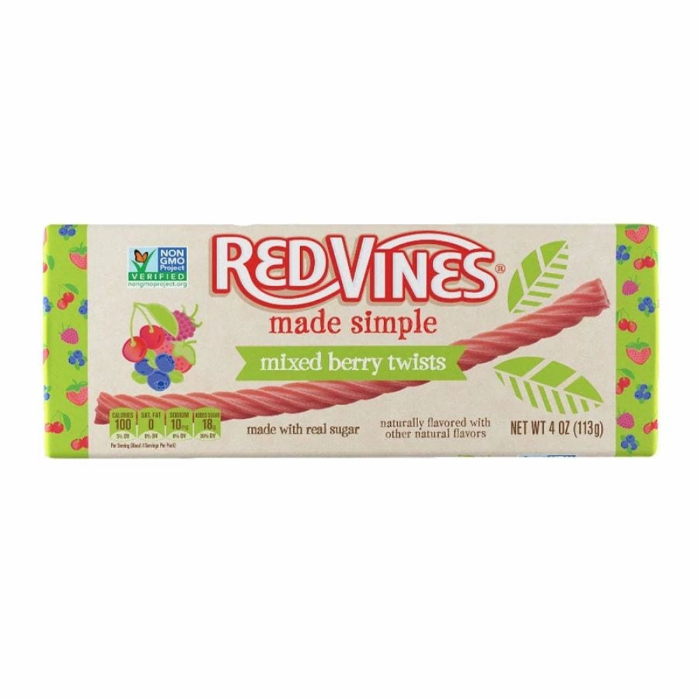 Red Vines Made Simple are a "better-for-you" twist on our classic Red Vines®. Twists available in a 4oz tray in flavor, Mixed Berry.