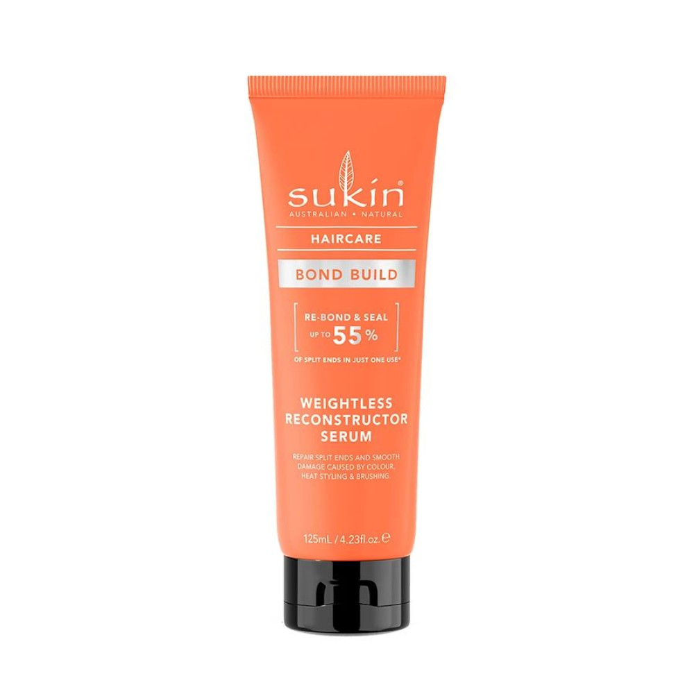This Sukin Bond Build Weightless Reconstructor Serum is your multitasking savior, sealing up to 55% of split ends in just one use!* And this lightweight creamy formulation can be used as a pre-wash treatment or a post-wash styling smoother, or both! Carefully crafted in the Sukin Lab, to boast their Bond Build active, this gem helps repair, re-bonding hair and sealing split ends to help protect from further day-to-day damage. Naturally enhanced with Australian native botanicals, it's positively bursting with hair-loving antioxidants. Use whenever you need added protection, gloss and manageability - pre or post-styling! Key ingredients: Bond Build Active - a naturally derived ingredient boasting long-lasting split-end repair by forming bridges (also known as bonds) over the split in the hair cuticle to 'close' and repair the damage. Hair ends will appear thicker, feel smoother and look healthier. Vitamin E - with antioxidant properties to help reduce stress that can cause damage to the hair follicle Kakadu Plum- One of the world's richest known sources of Vitamin C, antioxidant rich Kakadu Plum helps protect from damage Australian Hibiscus - Rich in betaine and amino acids, helps to hydrate and moisturize the scalp Lemon Myrtle - With antioxidant properties to help protect your scalp and hair from environmental damage This silky weightless treatment serum will repair, re-bond and smooth the hair cuticle. Suitable for dry and damaged hair types, with 98% naturally derived ingredients, this Australian made, vegan and cruelty free serum is the ultimate hair architect, ideal for pre or post wash and style. *When compared to the tresses treated with shampoo without conditioning agents.