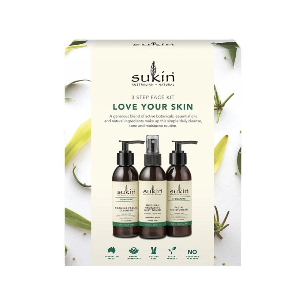 A generous blend of active botanicals, essential oils and natural ingredients make up this simple daily cleanse, tone and moisturize routine. Pack Includes: Sukin Foaming Facial Cleanser 125ml Sukin Hydrating Mist Toner 125ml Sukin Facial Moisturizer 125ml