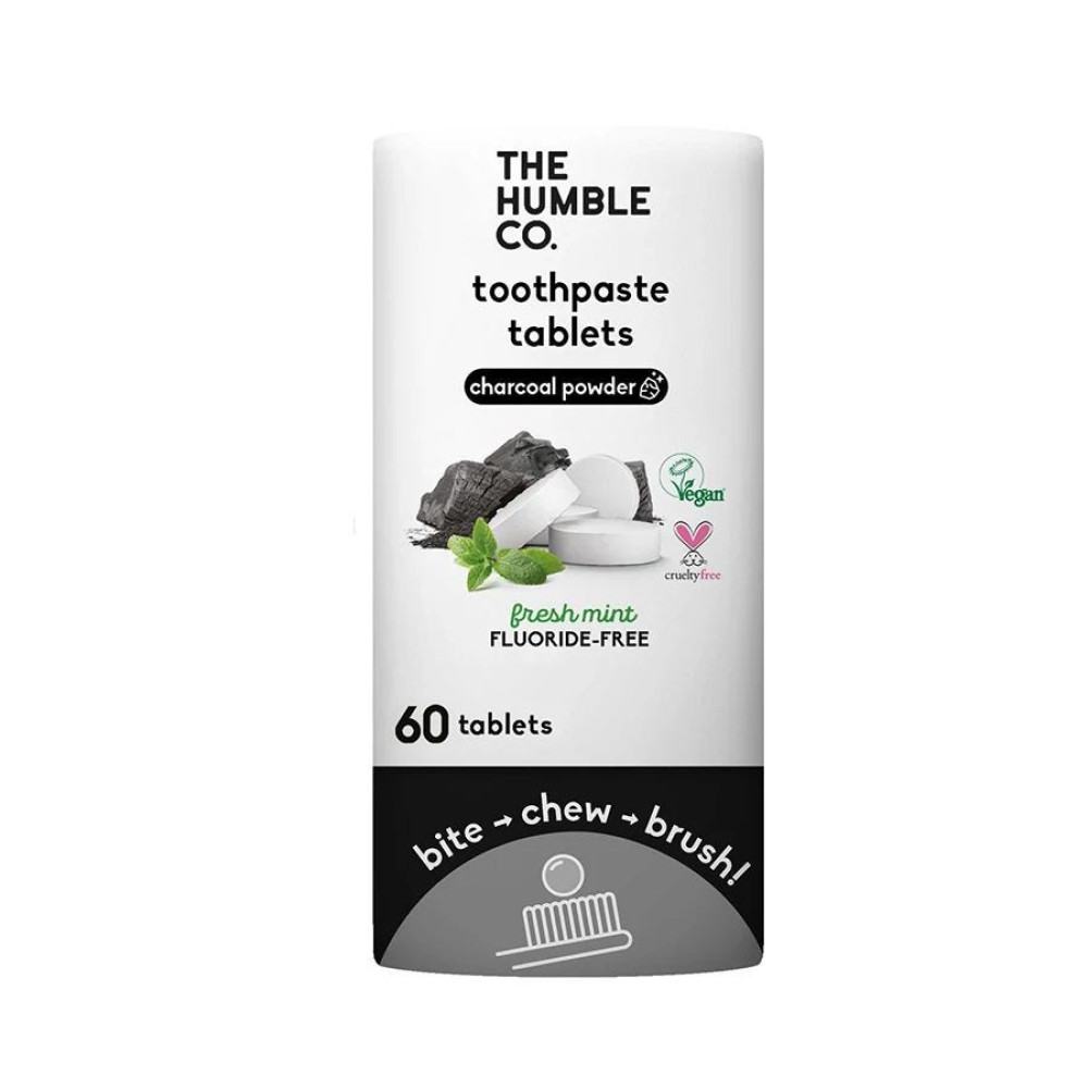 Sorbitol, Xylitol, Dicalcium Phosphate Dihydrate, Charcoal Powder, Maltodextrin, Microcrystalline Cellulose, Xanthan Gum, Ccocos Nucifera Oil, Silica, Magnesium Stearate, Stearic Acid, Peppermint (Mentha x Piperita l.) Oil, Melaleuca Alternafolia (Tea Tree) Leaf Oil, Citrus Limon (Lemon) Peel Oil, Rebaudioside A