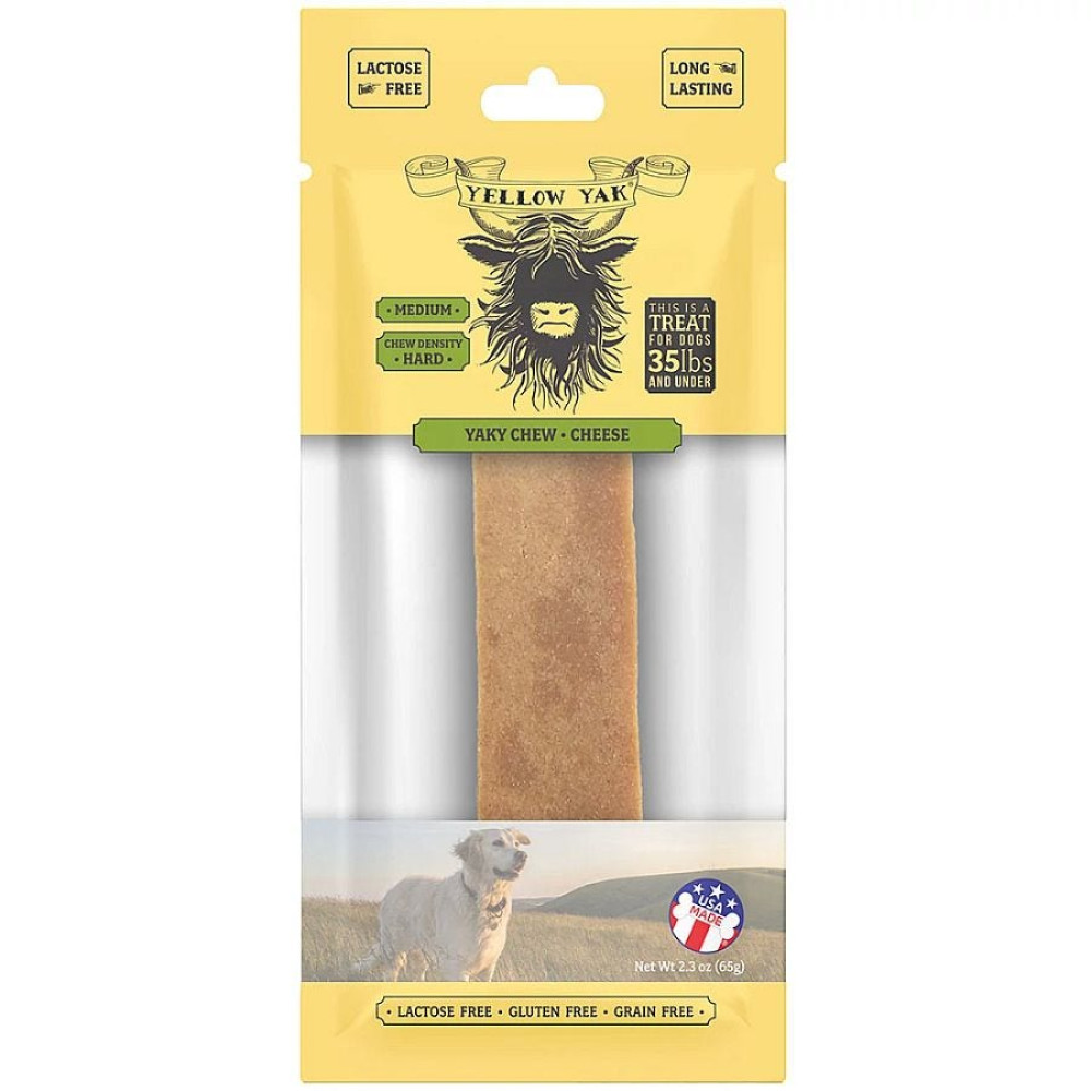 Yellow Yak; Yaky Chew - Hard Density Chew is an all-natural, long-lasting, smoked hard cheese chew for your super chewer. It is easily digestible with no preservatives or binding agents. These savory hard cheese chews are lactose, grain, gluten, corn, wheat and soy-free; providing your dog with a healthy alternative to rawhide. Yellow Yak is proudly made in the USA, with locally sourced ingredients.