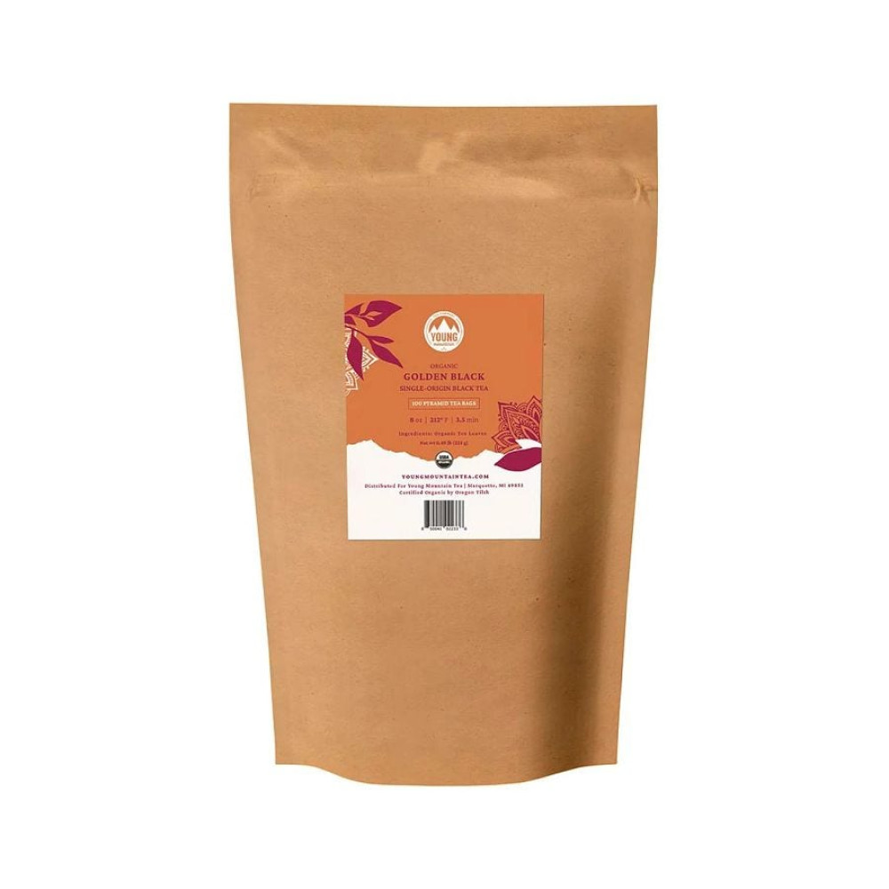 Young Mountain Tea Organic Golden Black 100 pyramid tea bags in bag