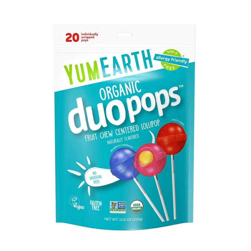 Double the fun and treat yourself to New Duo Pops — a fruity, candy-coated lollipop with a chewy, candy-filled center. This nostalgic treat bursts with flavor while being free from the top 9 allergens, artificial dye-free, USDA organic, non-GMO and vegan. Taste these three yummy and playful blend of flavors: Cherry Apple, Blueberry Raspberry, and Strawberry Lemon. These Duo Pops are classroom-safe and perfect as a lunchtime snack, an afternoon treat, party favor, Valentine exchange, Easter basket treat, Halloween goodie bag sweet, stocking stuffer and an on-the-go snack! All pops are individually wrapped for a sweet treat anytime.