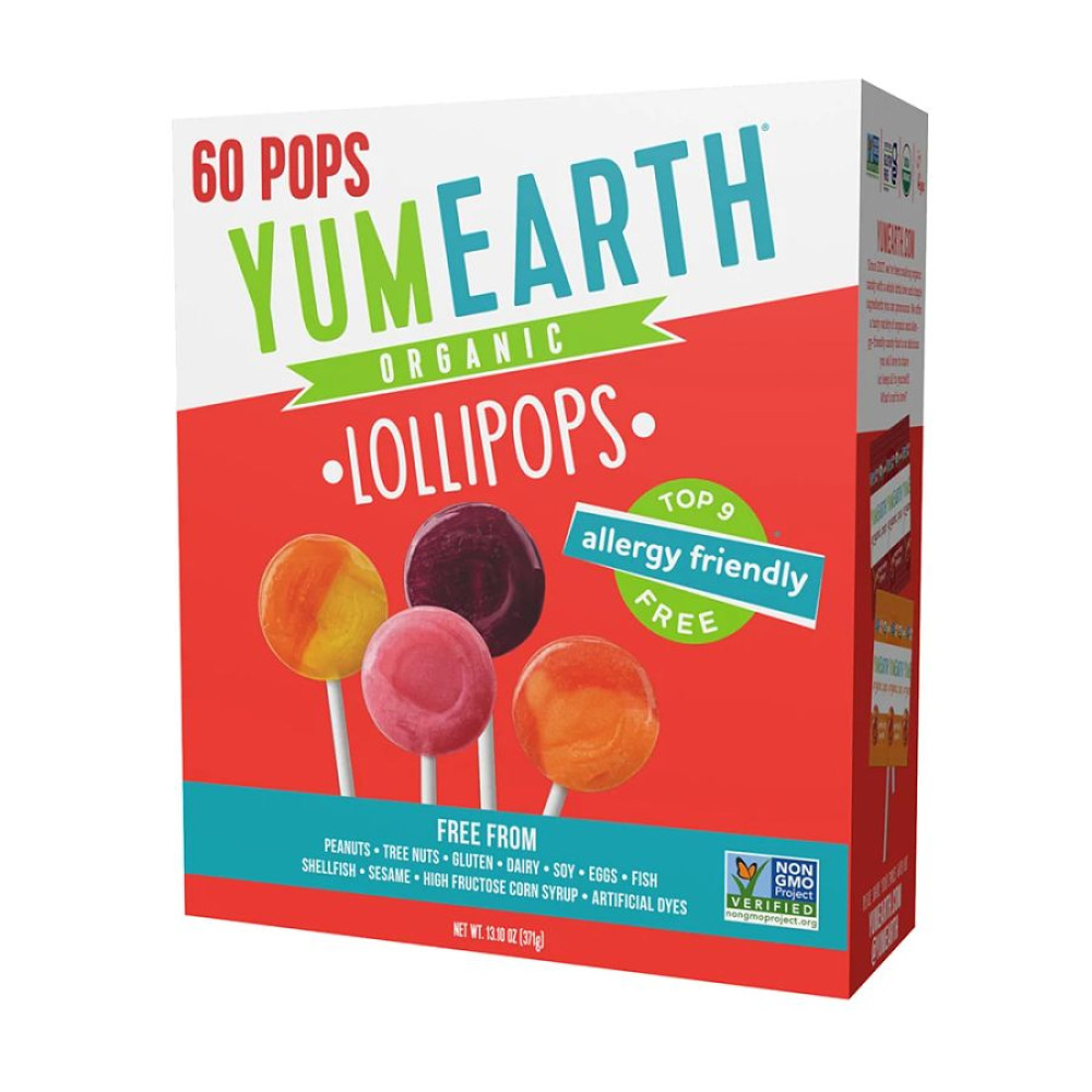 YumEarth Organic Assorted Fruit Flavor Lollipops 60 count box