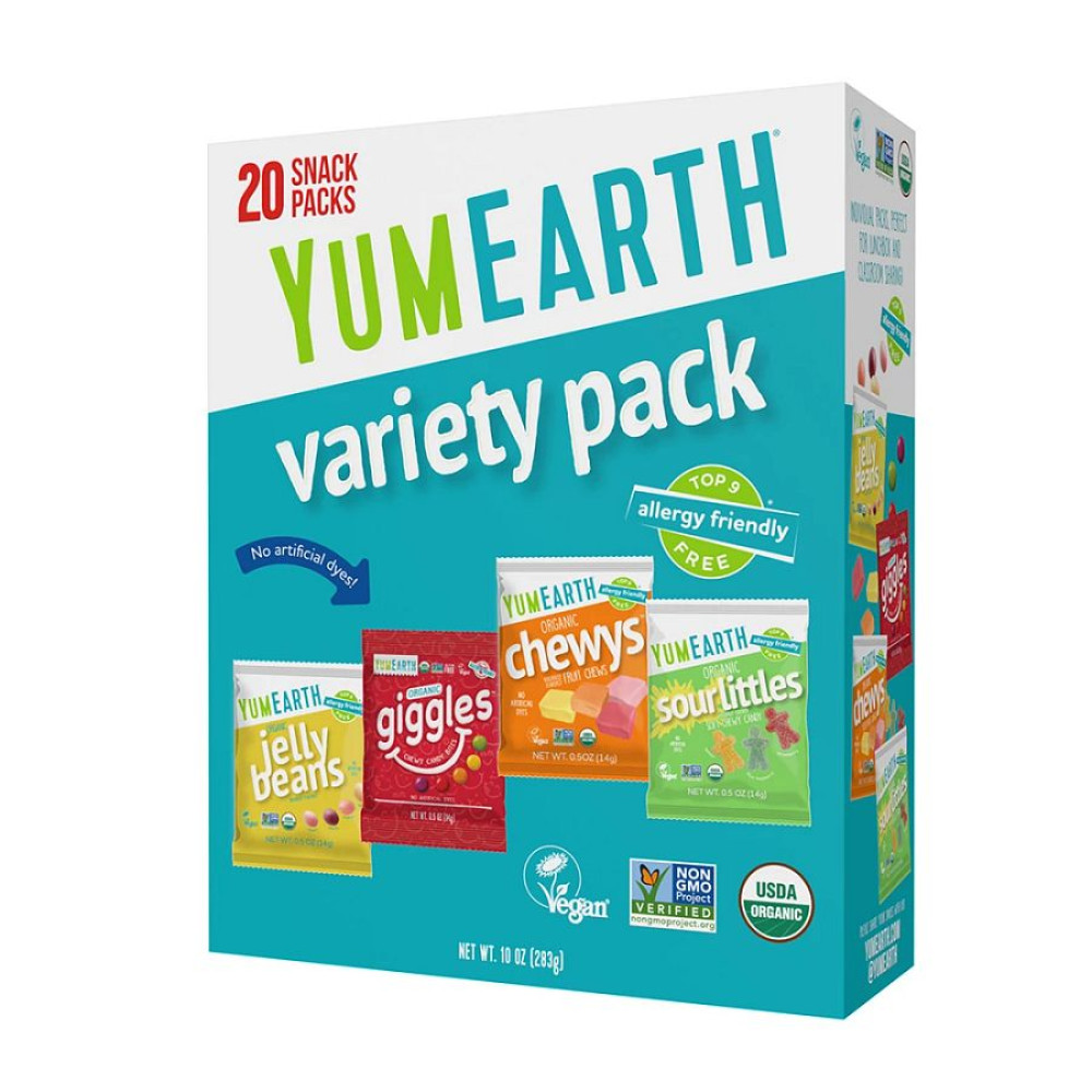 Snack time just got better with YumEarth's variety box! Inside, you'll find 20 snack packs including an assortment of Jelly Beans, Giggles, Chewys, and New Sour Littles — all bursting with flavor! Perfect for lunchboxes, parties, or an on-the-go treat. These allergy-friendly snacks are sure to please everyone.